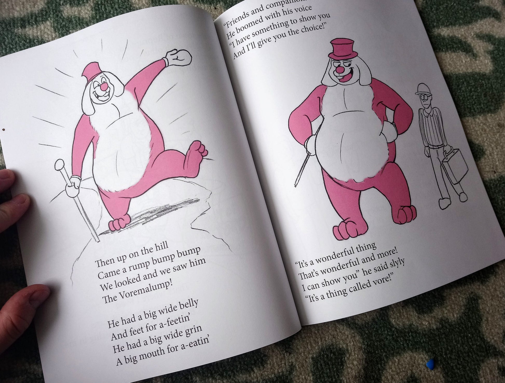 A young man is exposed to the mystery of vore by a large bellied creature called The Voremalump in this fun and humorous parody of children's books like Dr. Seuss.